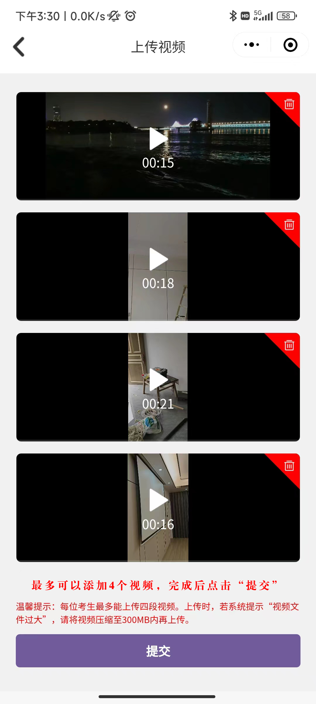 (2)如果单个视频超过400MB,则无法上传。