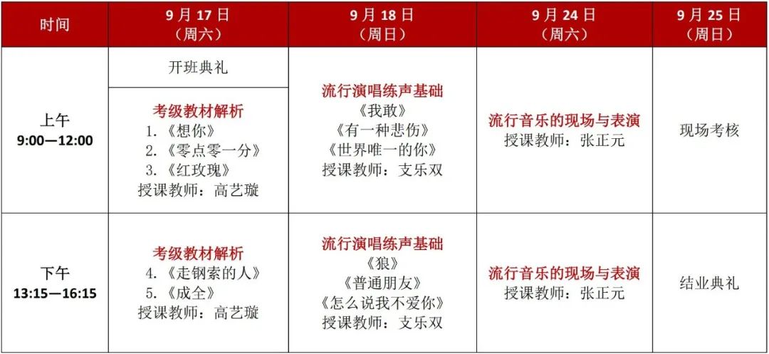 浙江音乐学院社会音乐教育流行演唱专业标准级培训师研修班课程表